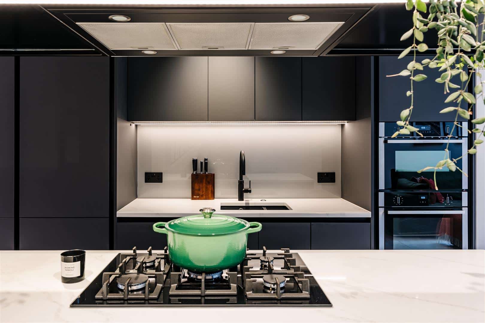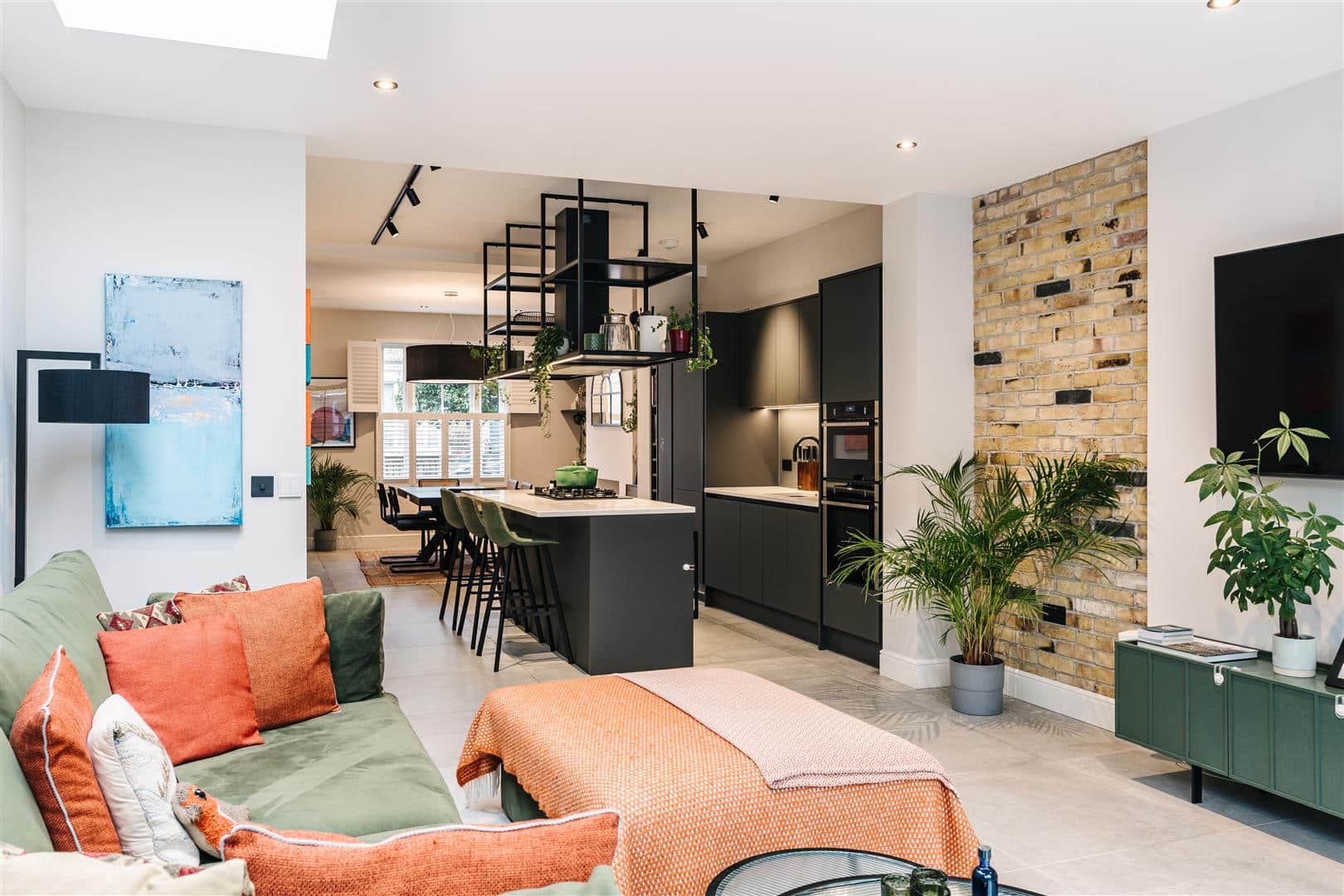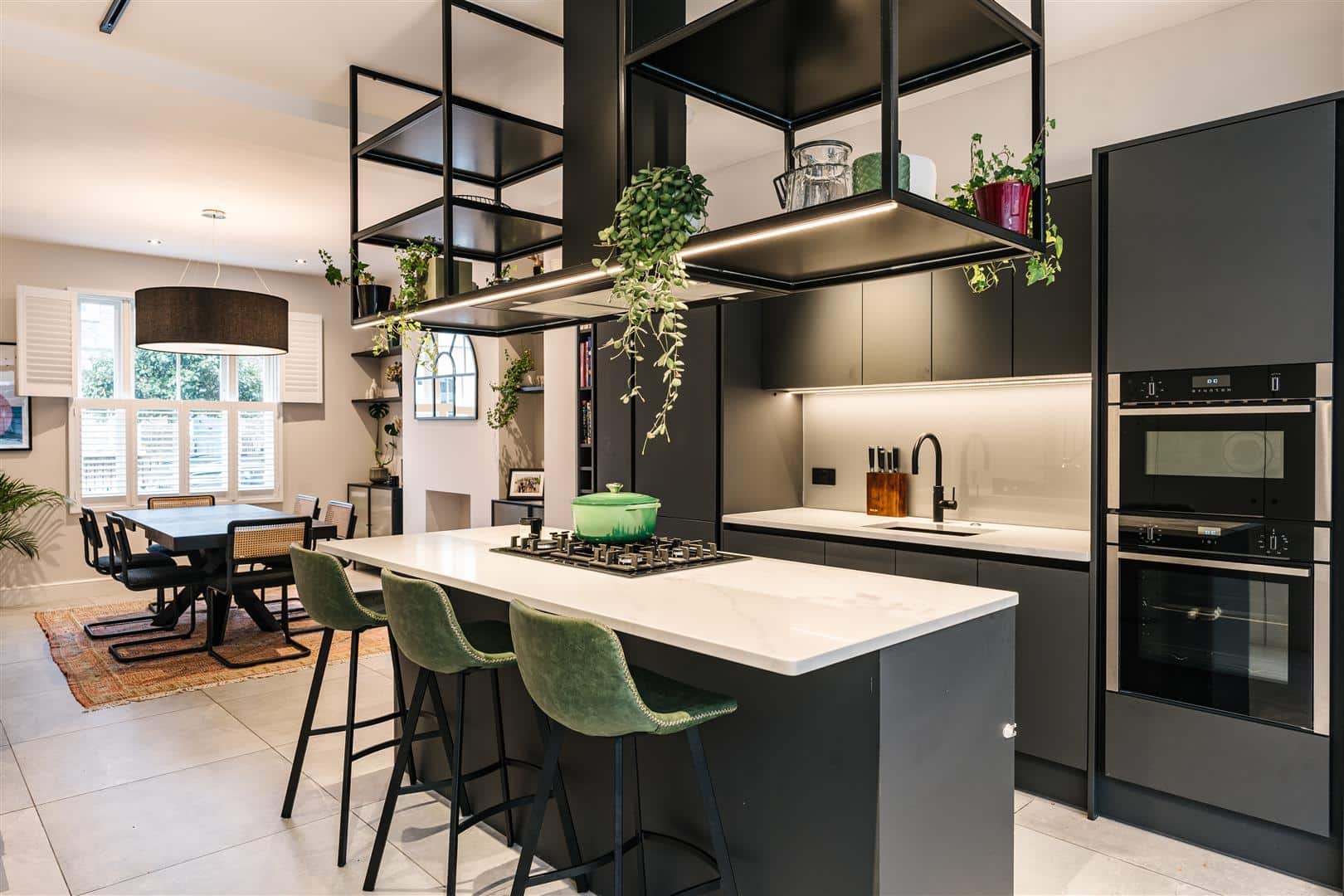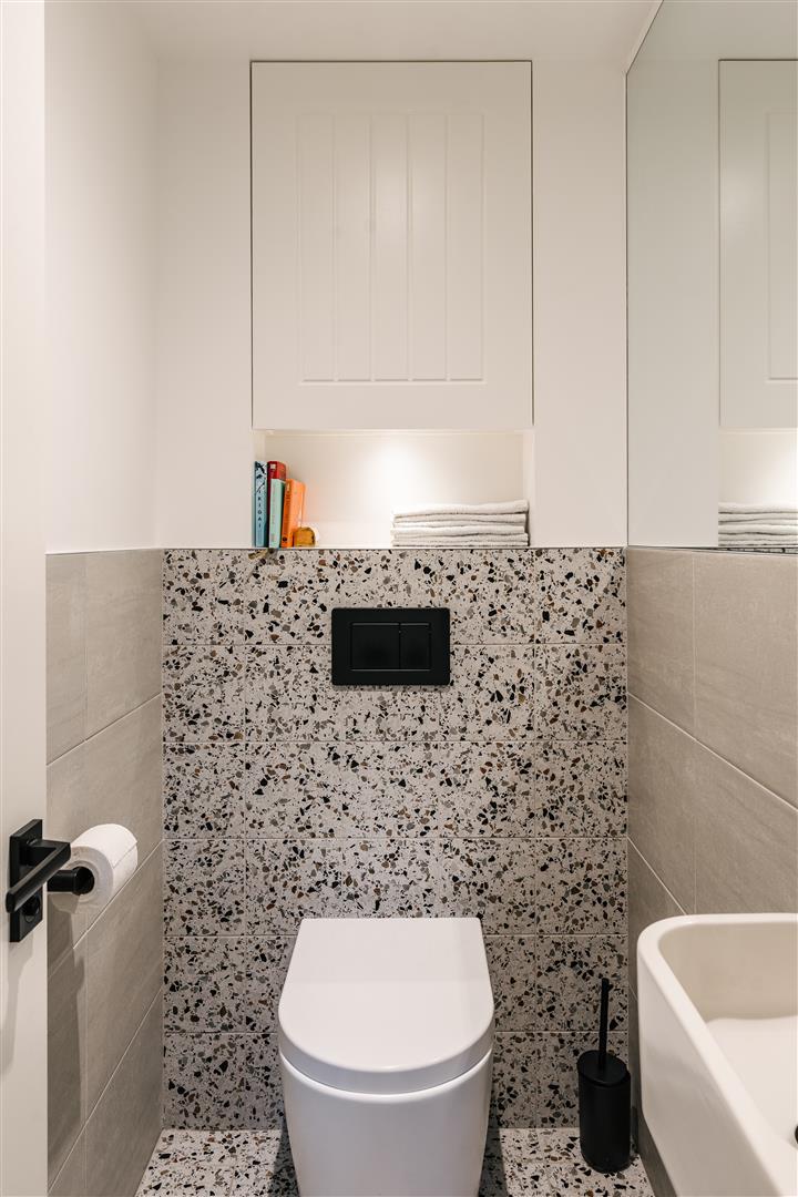 In particular, the ground floor has been extended and opened up to create an exceptionally lovely kitchen/dining reception space, with high quality cabinetry, a central island and full complement of premium appliances. To the rear, full-height glazed doors doors with low-profile frames provide excellent natural light and a wonderful interaction with the garden.
