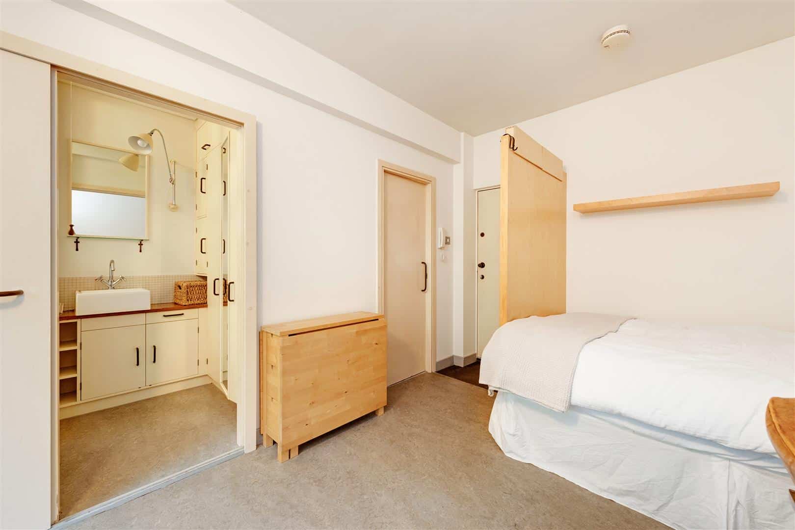 The flat is approached via a communal garden and is accessed by its own private entrance and provides a 17'3" studio room overlooking communal gardens and the Belsize Wood Nature Reserve, an en-suite dressing room/bathroom, and a well-designed separate fitted kitchen. The Isokon building is located along Lawn Road being just a short walk from Belsize Park Underground Station (Northern Line Zone 2), the excellent shopping facilities of both South End Green and Haverstock Hill, and the open spaces of Hampstead Heath.