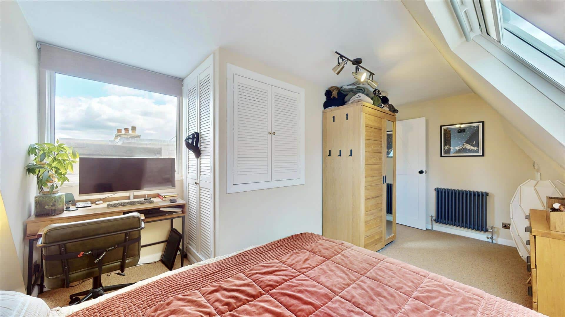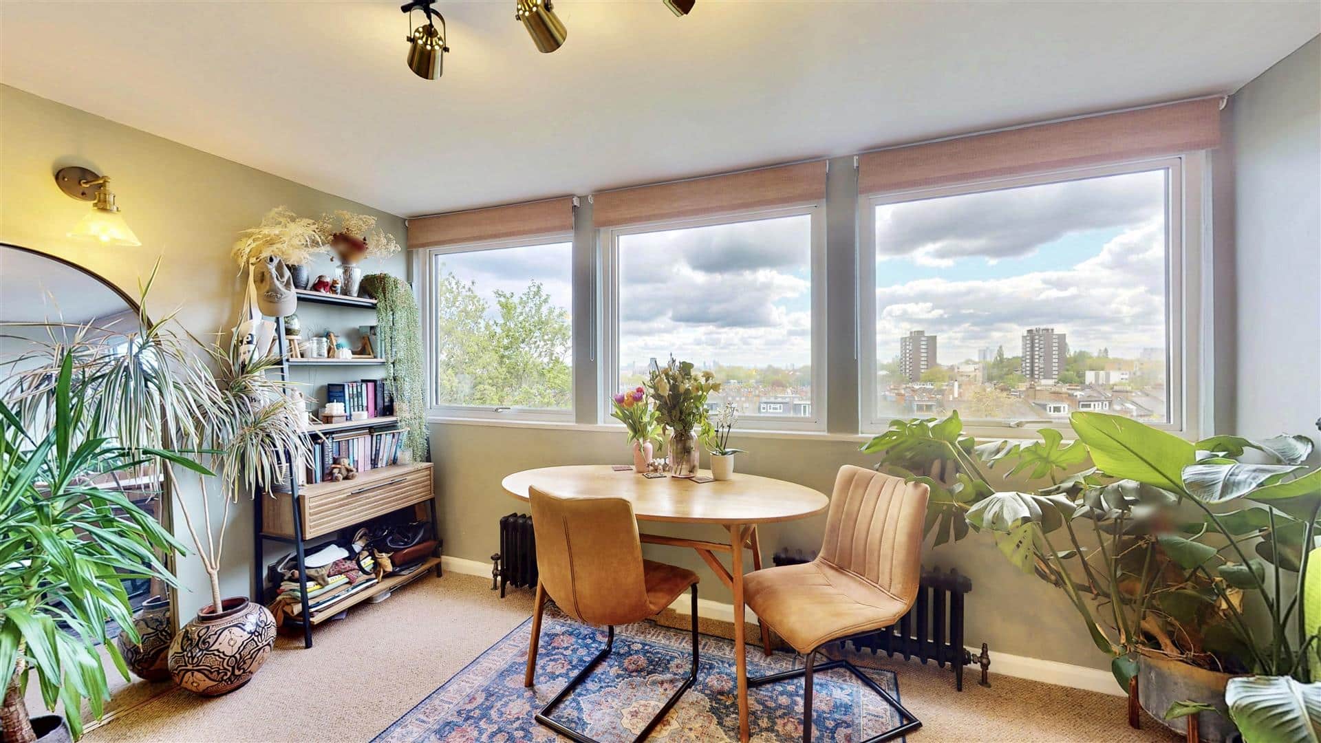 A stunning spacious one bedroom apartment with amazing views across the London skyline, arranged over the top floor of a lovely semi-detached Victorian house, enjoying an enviable location only moments from Hampstead Heath and the amenities of South End Green.
