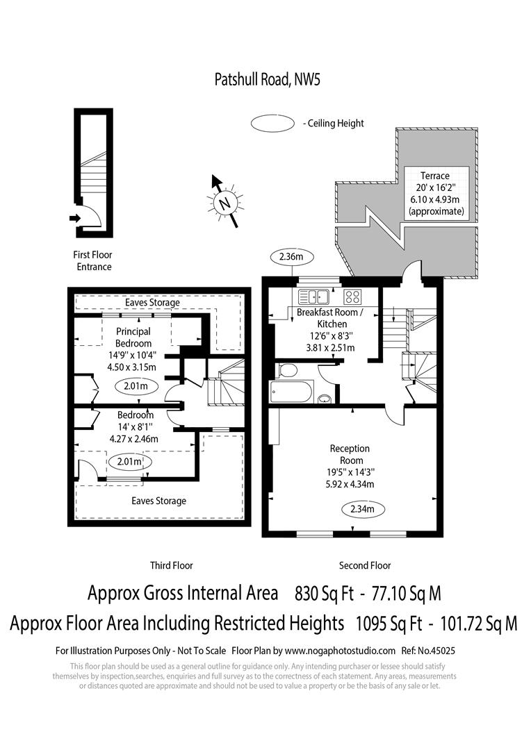 tA very fine two bedroom upper maisonette with an exceptionally large roof terrace, occupying the upper two levels of a handsome period building, perfectly situated in a tranquil location on Patshull Rd, just the right distance from the bustle and amenities of Kentish Town Rd.